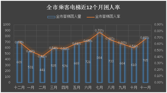 注:全市客梯困人率=每月客梯困人次数÷当月全市在用客梯总数×100%