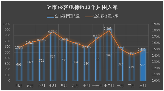 注:全市客梯困人率=每月客梯困人次数÷当月全市在用客梯总数×100%