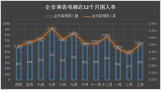 注:全市客梯困人率=每月客梯困人次数÷当月全市在用客梯总数×100%