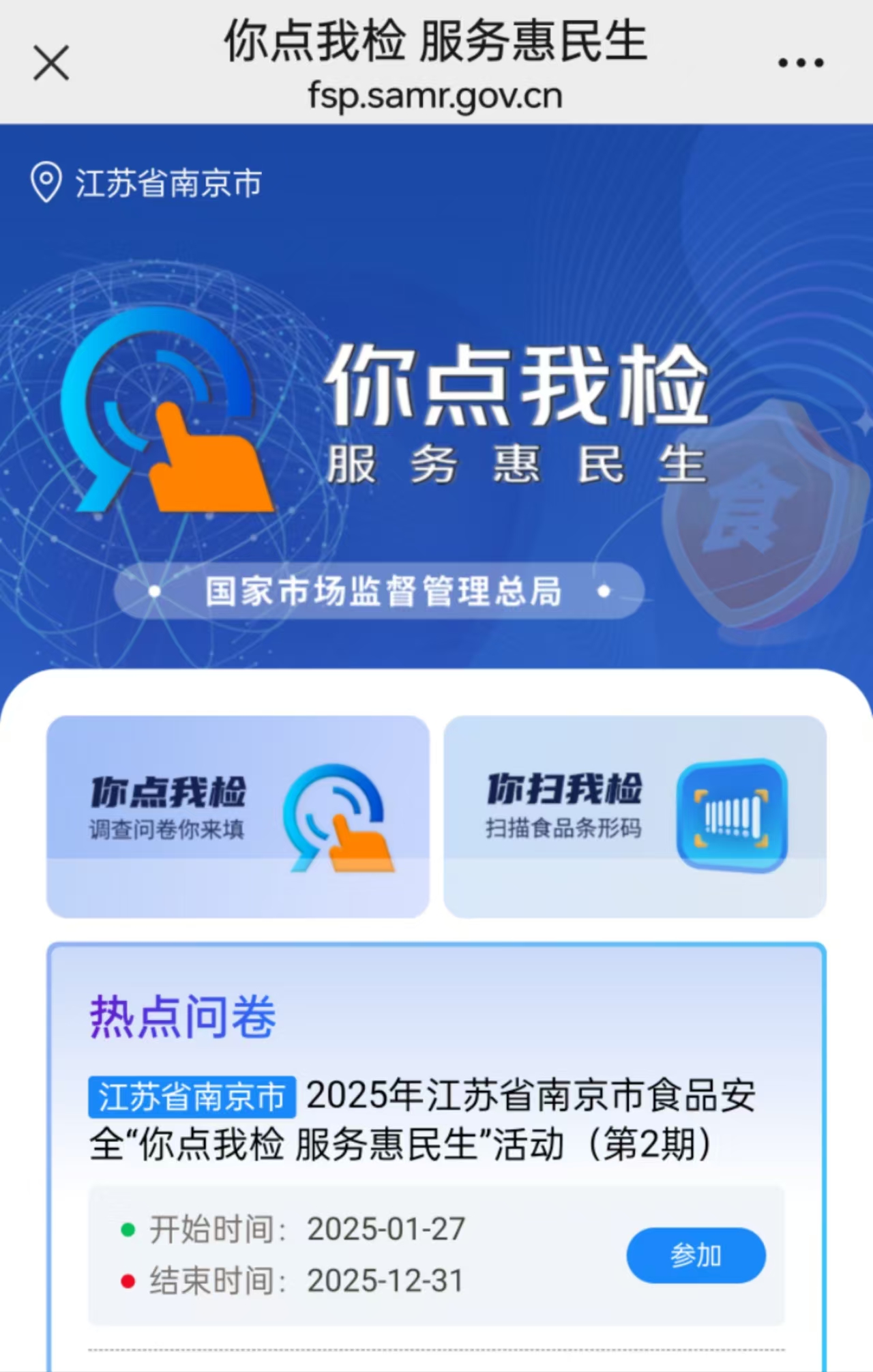 市场监管局诚邀您参与2025年食品安全 “你点我检 服务惠民生”问卷调查(第2期)