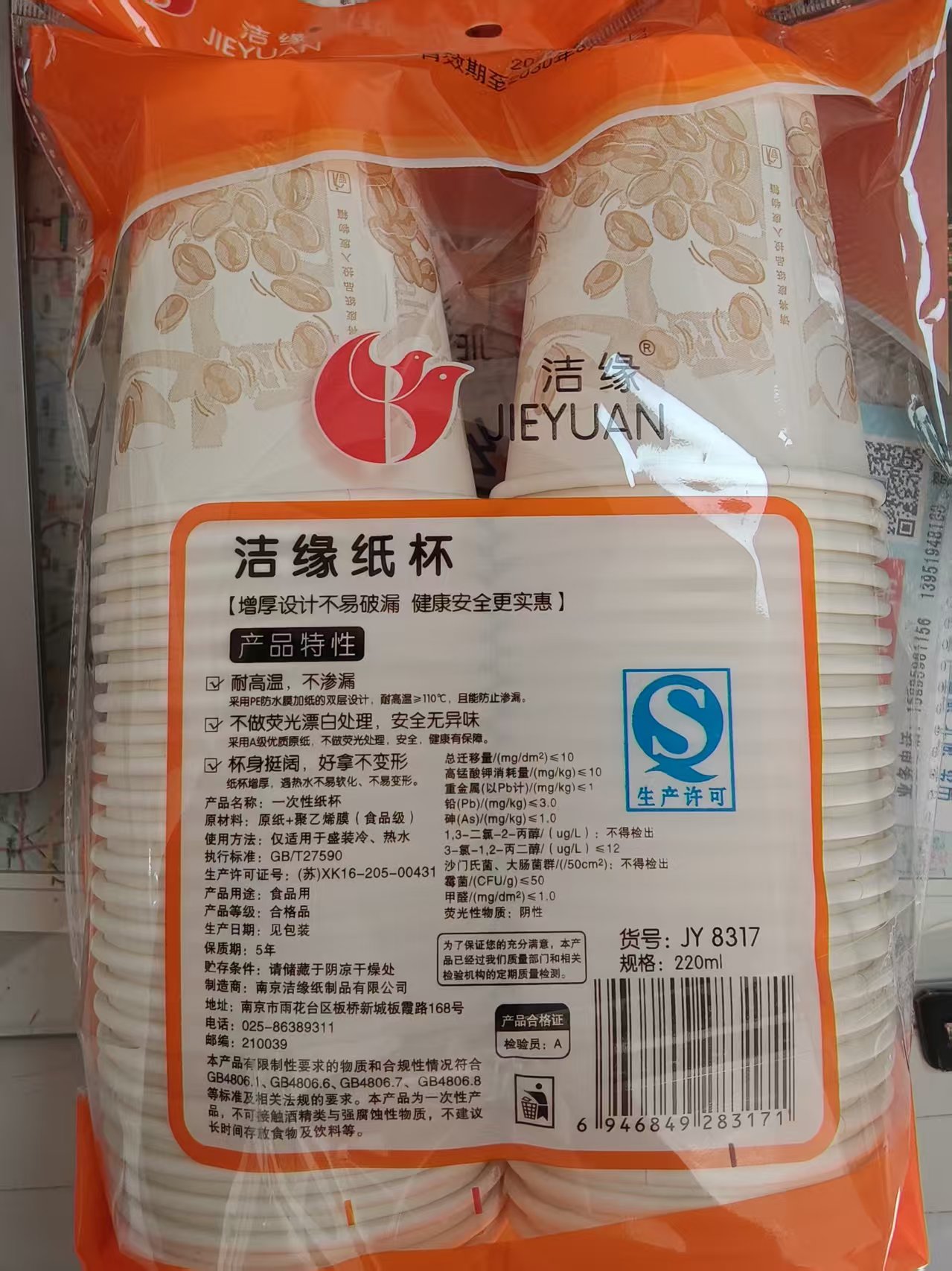 南京洁缘纸制品有限公司召回洁缘牌一次性纸杯