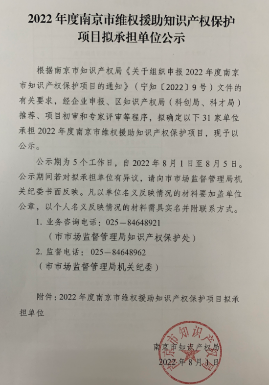 2022年度麻豆tv 维权援助知识产权保护项目拟承担单位公示